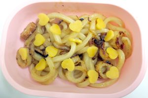 Yakiudon, aka fried udon (I used onion and chikuwa) with heart shaped cheese sprinkled on top.
