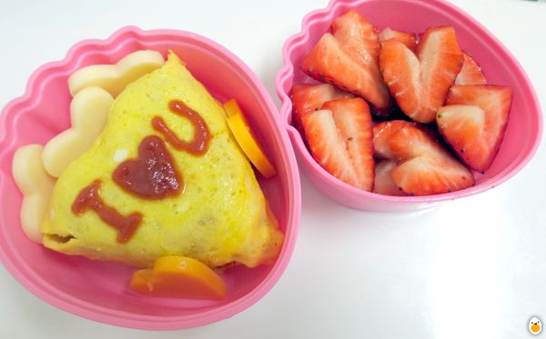 Heart Omu rice, heart boiled carrot, heart cheese, heart strawberries <3 <3 <3
